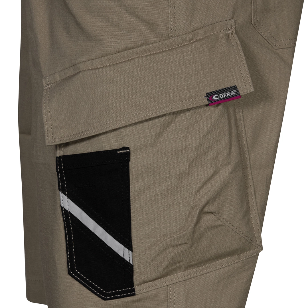 Descrizione:tessuto ultraleggero (200g/m2) e traspirante, trama ripstop, tessuto ad elevata percezione elastica, ampie tasche anteriori, elastico in vita, tasca laterale chiusa da pattina con taschino porta-attrezzi, inserto riflettente, doppia tasca posteriore di cui una chiusa con pattina
